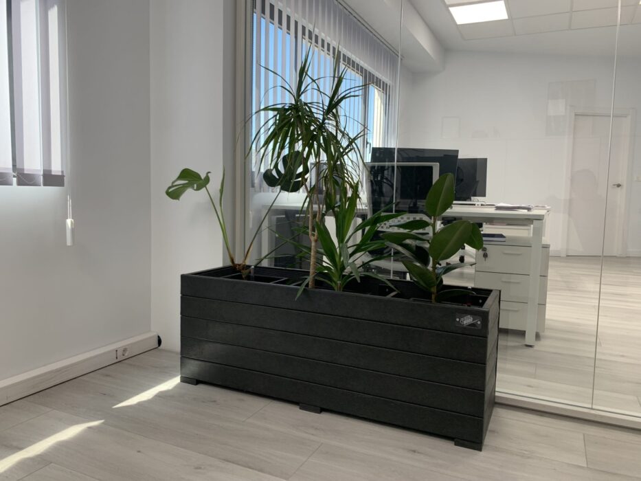 Las jardineras diseñadas para exterior deben ser resistentes a la intemperie, al sol y a la humedad. Las jardineras de plástico reciclado son una opción muy utilizada porque no se deterioran y no requieren mantenimiento.